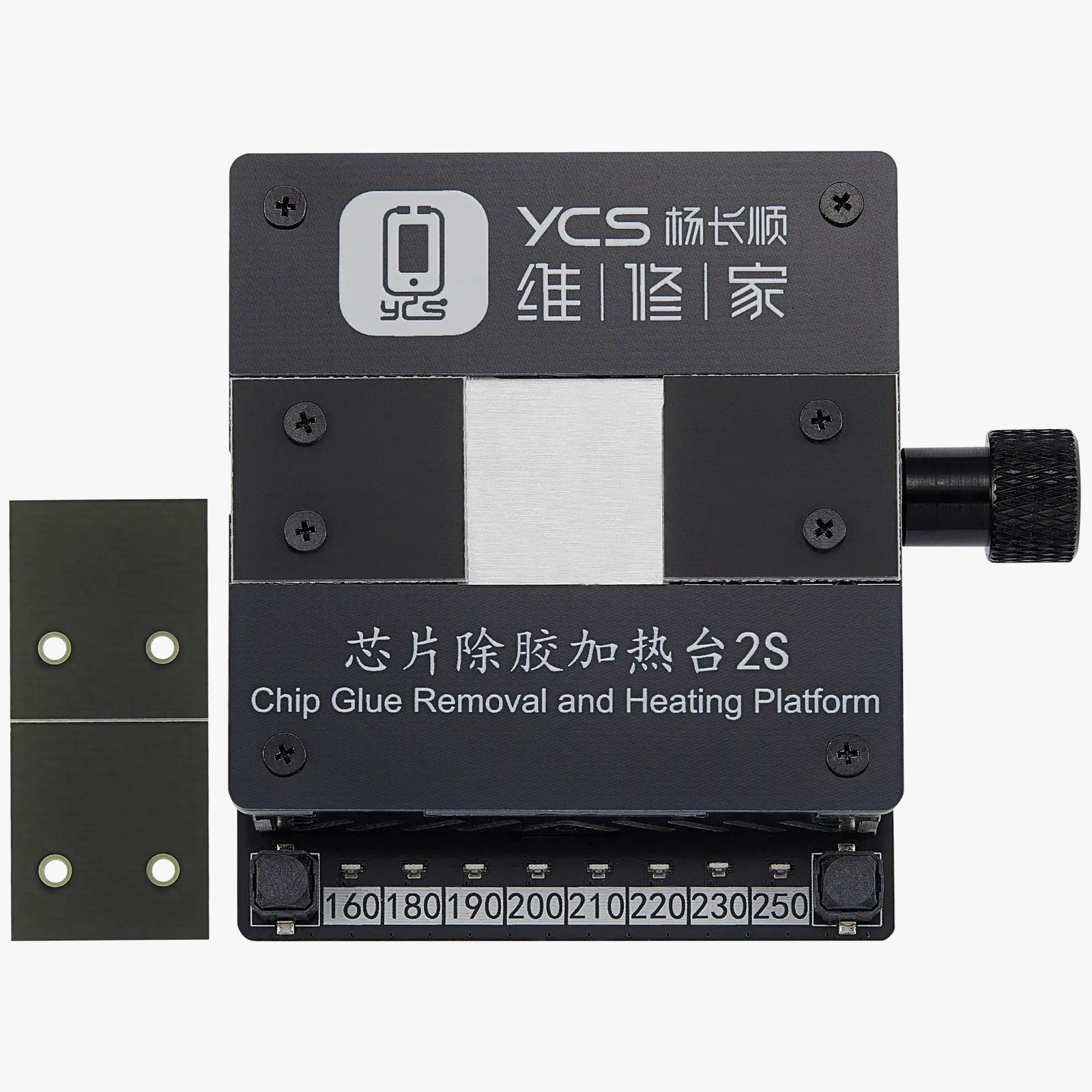 Placa de incalzire YCS 2S este un instrument profesional utilizat in service-urile GSM pentru operatiuni de indepartare adeziv (degumming), preincalzire si lucrari de micro-sudura pe componente electronice precum IC, CPU sau BGA.